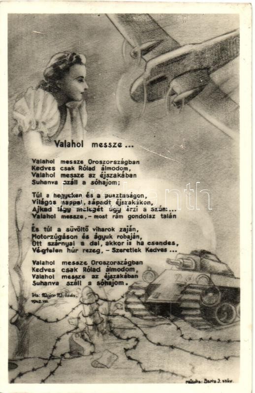 1942 Valahol messze Oroszországban… Major M. tizedes verse, rajzolta Barta J. szakaszvezető. Kiadja Toghia Sándor rep. szkv. / WWII Hungarian romantic military art postcard<a href="https://www.darabanth.com/hu/gyorsarveres/423/kategoriak~Kepeslapo