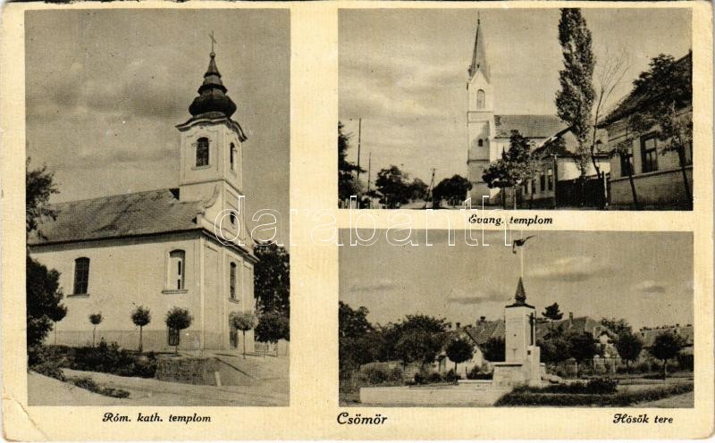 1943 Csömör, Evangélikus és római katolikus templom, Hősök tere (EK)
