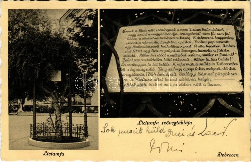 1943 Debrecen, Líciumfa és szövegtáblája<a href="https://www.darabanth.com/hu/gyorsarveres/417/kategoriak~Kepeslapok/Magyarorszag~1500004/1943-Debrecen-Liciumfa-es-szovegtablaja~II2629799/?utm_source=affiliate&utm_medium=mutargy&utm_campaign=allando
