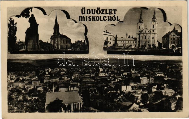 1950 Miskolc, mozaiklap, látkép zsinagógával