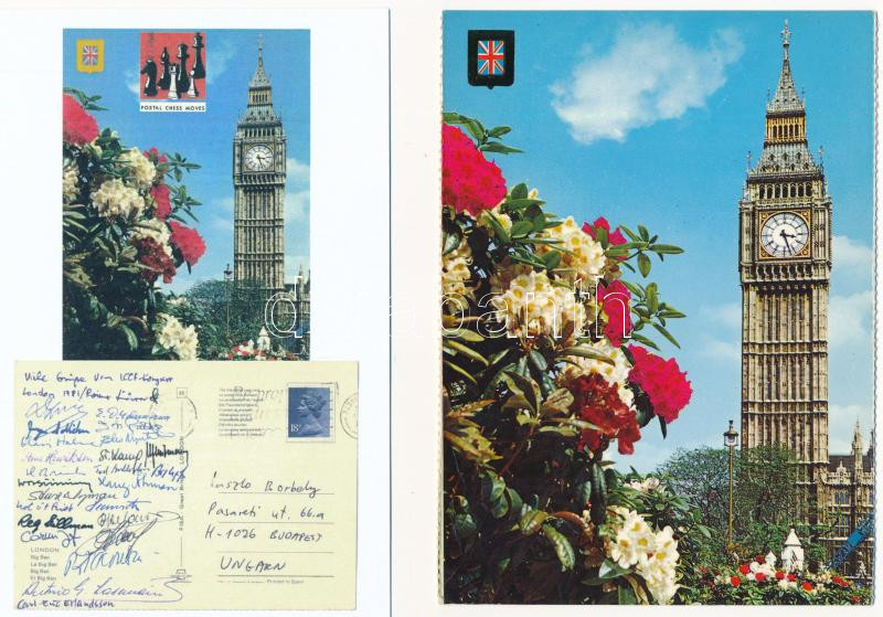 1981 London ICCF Chess Meeting – modern levelezési sakk képeslap és magyar reprint lapja<a href="https://www.darabanth.com/hu/gyorsarveres/440/kategoriak~Kepeslapok/Modern-Kepeslap-Tetelek~2000004/1981-London-ICCF-Chess-Meeting-modern-levelezesi-sak