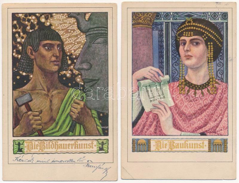 2 db RÉGI művész motívum képeslap / 2 pre-1945 art motive postcards: Die Baukunst / Die Bildhauerkunst. B.K.W.I. 130-1/5.<a href="https://www.darabanth.com/hu/gyorsarveres/412/kategoriak~Kepeslapok/Kepeslap-Tetelek~2000004/2-db-REGI-muvesz-motivum-k