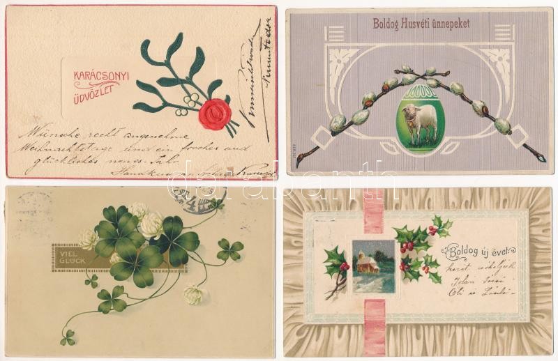 28 db RÉGI dombornyomott és litho motívum képeslap vegyes minőségben / 28 pre-1945 embossed and litho motive postcards in mixed quality