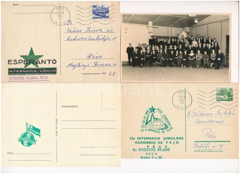 3 db modern eszperantó motívum képeslap + 1 régi fotó / 3 modern Esperanto motive postcards + 1 pre-1945 photo<a href="https://www.darabanth.com/hu/gyorsarveres/417/kategoriak~Kepeslapok/Eszperanto~1500021/3-db-modern-eszperanto-motivum-kepeslap-plu