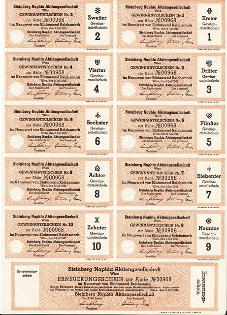 Wien 1943. "Steinberg Naphta RT" 10 dbnyreményszelvénye