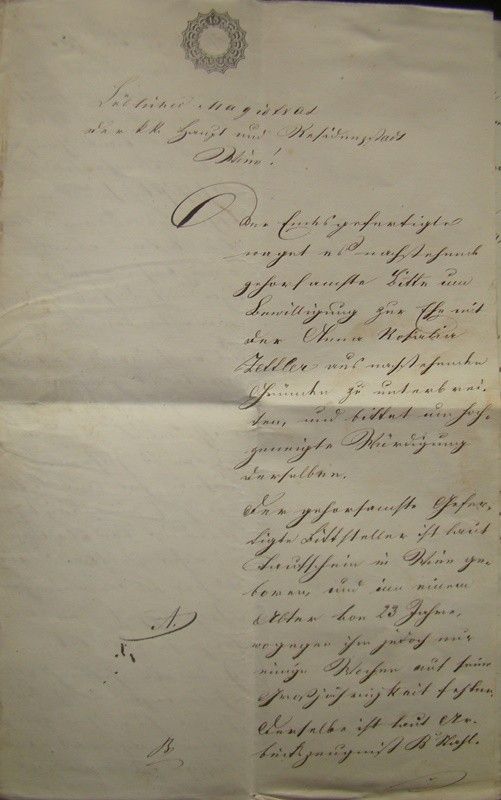 1850 Szignettás levél városi tanácsos aláírásával a Cs. és Kir. katonaságnak / 3 oldal