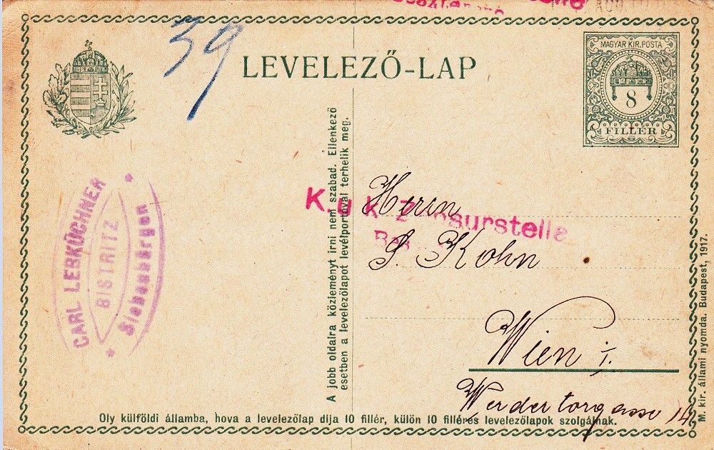 1917. Levelezőlap " K.u.k Zensurstelle"
