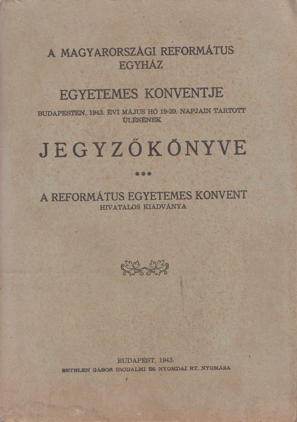 1943 A Magyarországi Reformált Egyház egyetemes konventjének jegyzőkönyve, Budapest