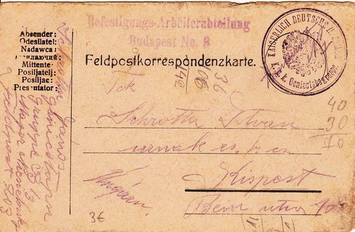 1915. Tábori postai levelezőlap "Befestigungs-Arbeiterabteilung Budapest No,3"