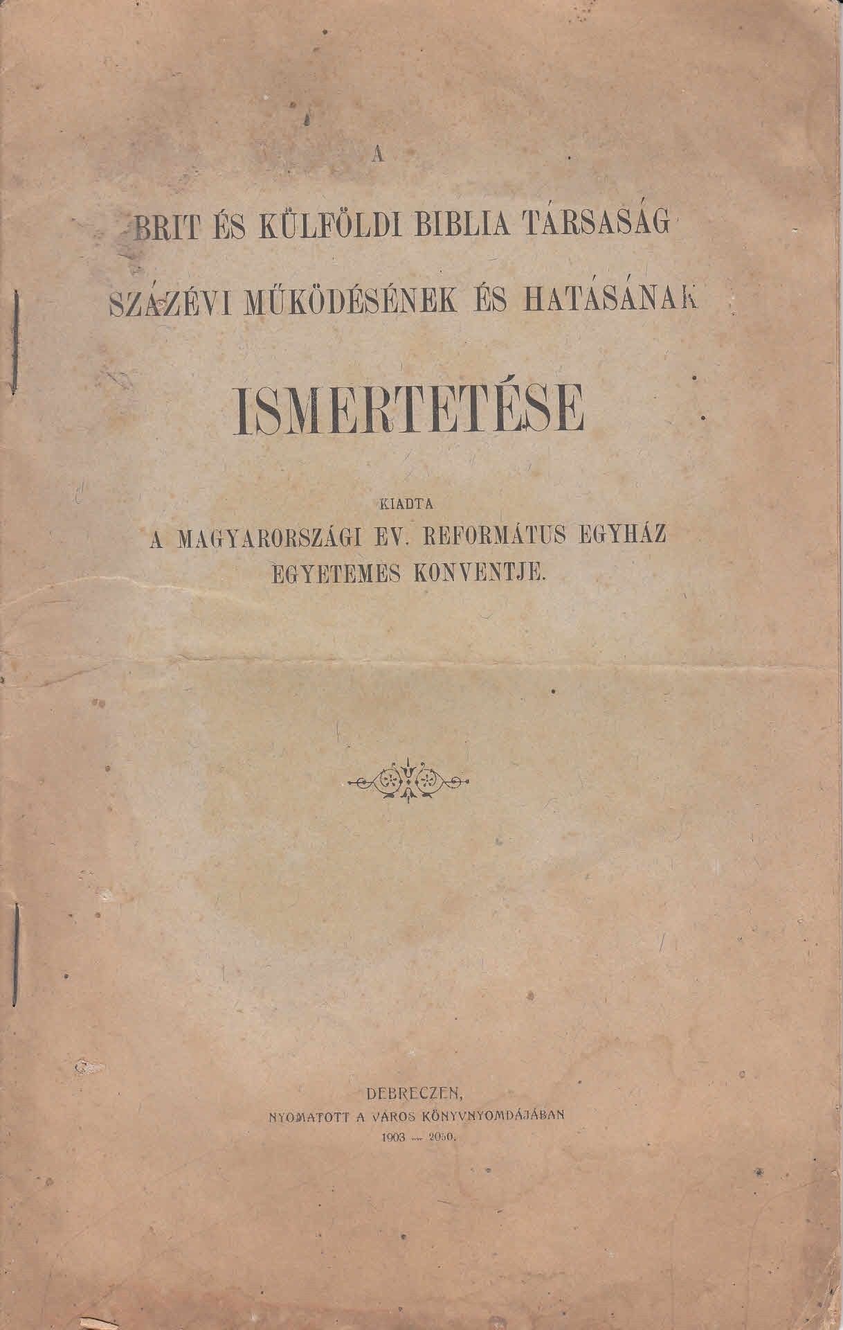 1903 Brit és külföldi Biblia társaság százévi mükődésének és hatásának ismertetése