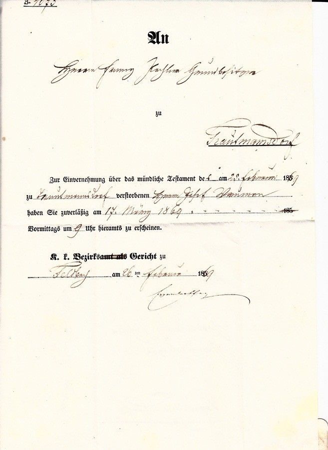 52-620 1869. Német nyelvű levél szárazpecséttel