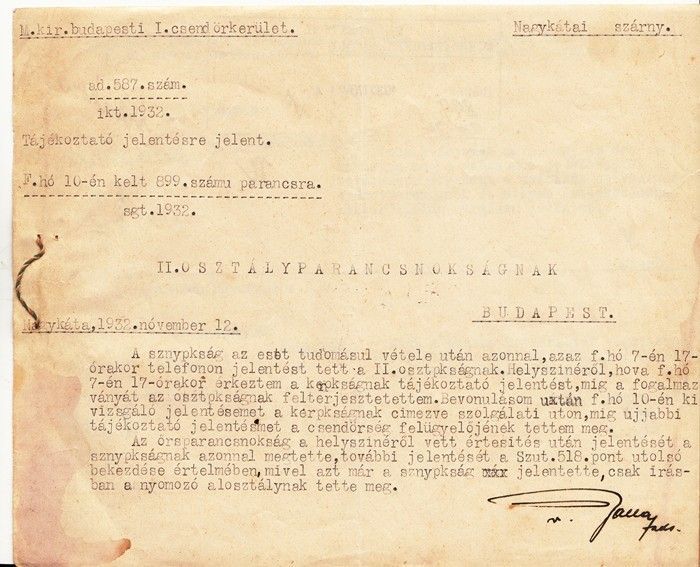 1932. Tájékoztó jelentésre, jelentés / I. ker. csendőrség