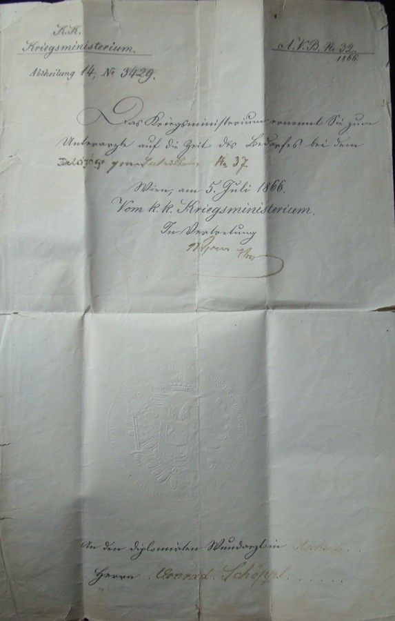 1866 Orvosi kínevezés / Honvédelmi Minisztérium szárazoecsétes levélpappirján