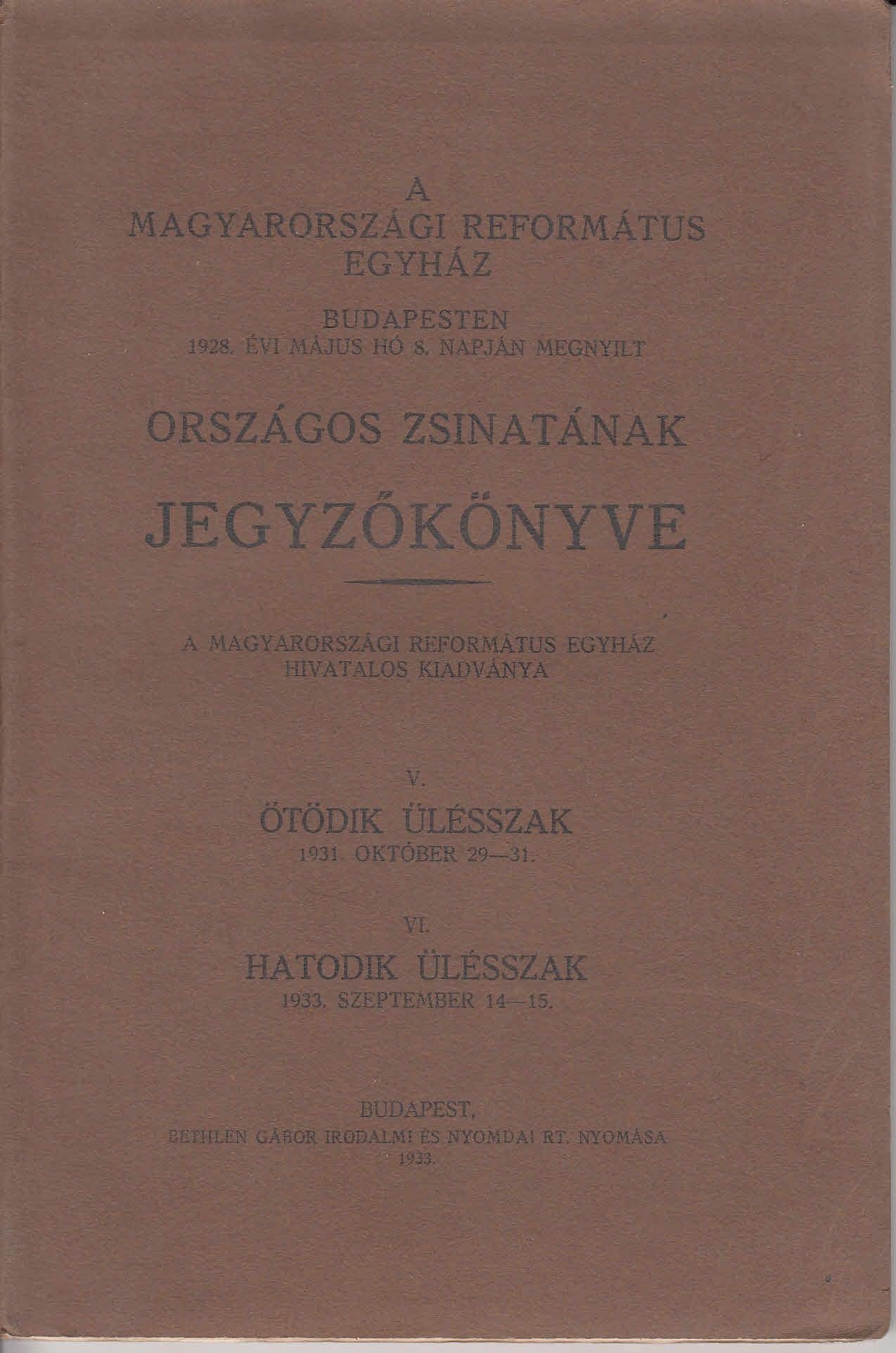 54-1315 1914 A Magyarországi Reformált Egyház országos zsinatának jegyzőkönyve 1928, Budapest / Felvágatlan oldallapok