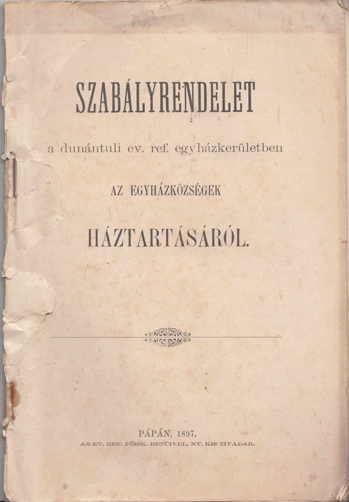 1897 Szabályrendelet a dunántuli ev. ref. egyházkerületben az egyházközségek Háztartásáról