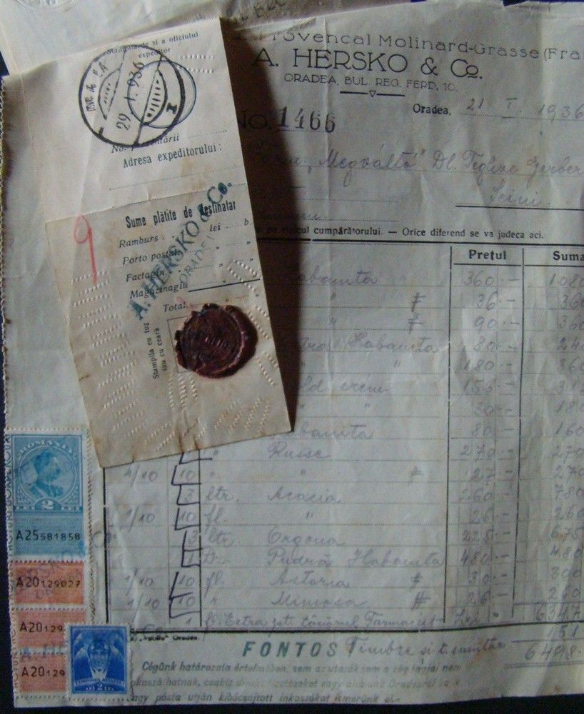 1936 5 db váltó és 1 db Számla a Szinérváraljai "Megváltó" gyógszertár pecsétjével