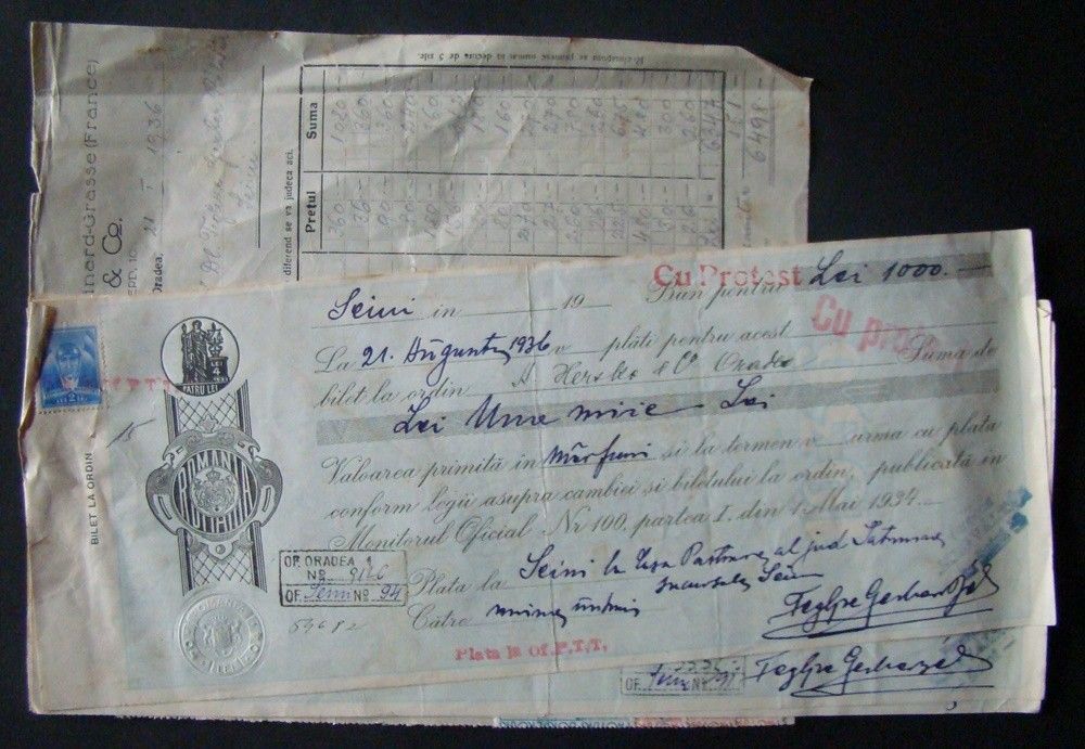 56-1251 1936 5 db váltó és 1 db Számla a Szinérváraljai "Megváltó" gyógszertár pecsétjével