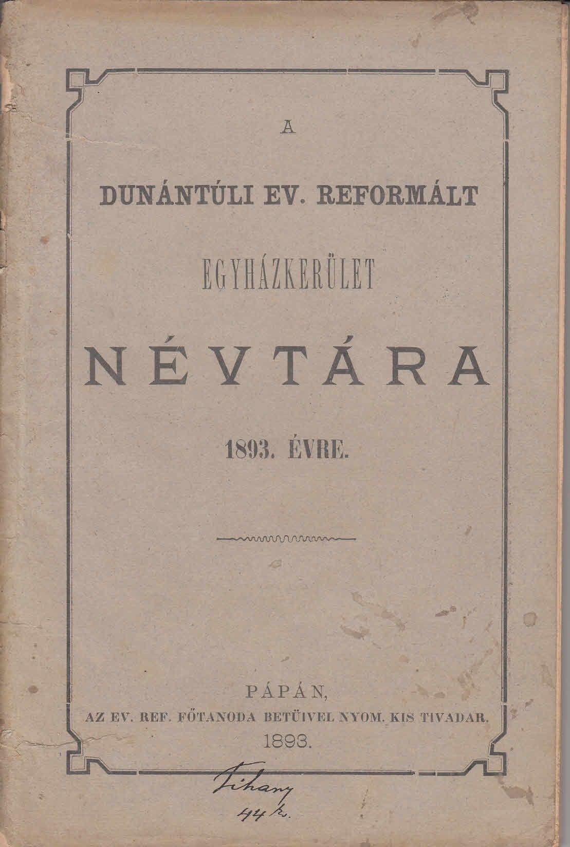 A Dunántuli Ev. Reformált Egyházkerület Névtára az 1893.évről