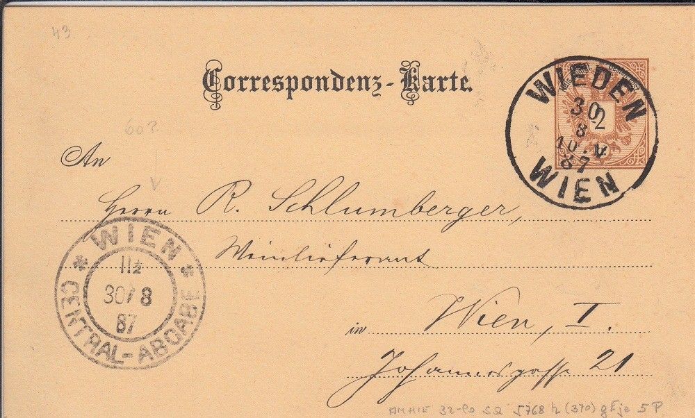 1887 2kr díjjegyes levelezőlap, központi postabélyegzővel "WIEN"