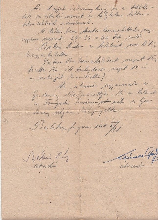 1951 Átadás-Átvételi jegyzőkönyv a volt Balatonnagybereki Állami Gazdaság "Allus" villájának