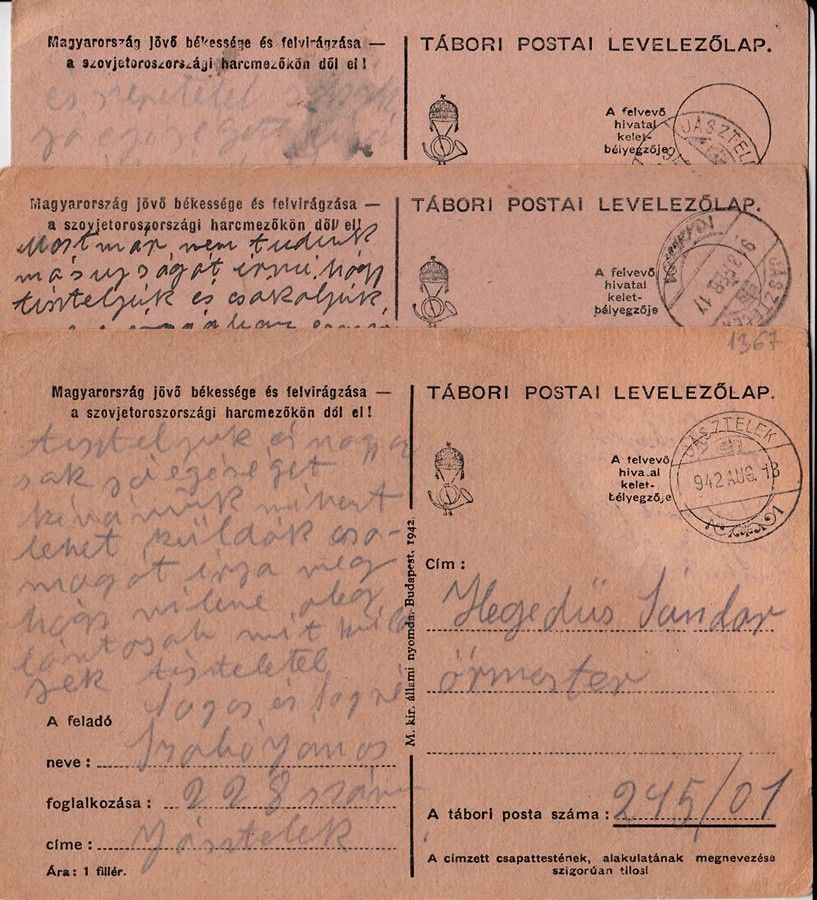 1942 3db Ellenörzőtt Tábori postai levelezőlap
