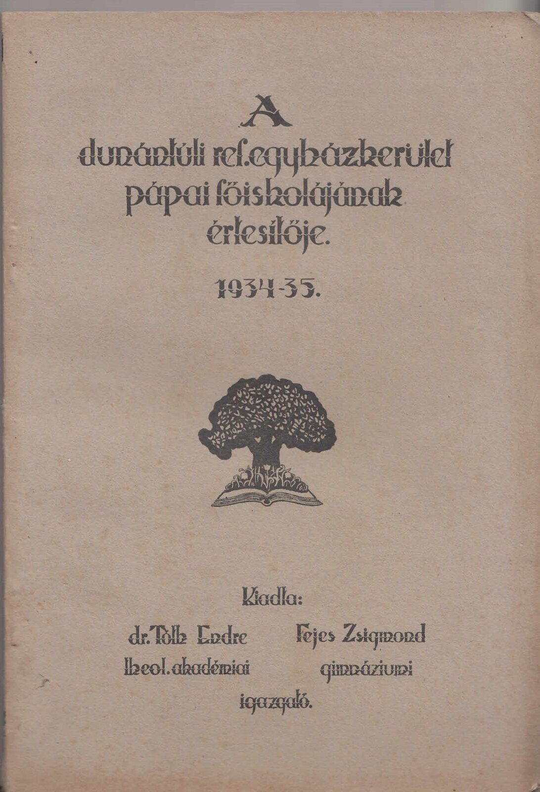 A Dunántuli Református Egyházkerület Pápai Főiskolájának értesítője az 1934-35. iskolai évről