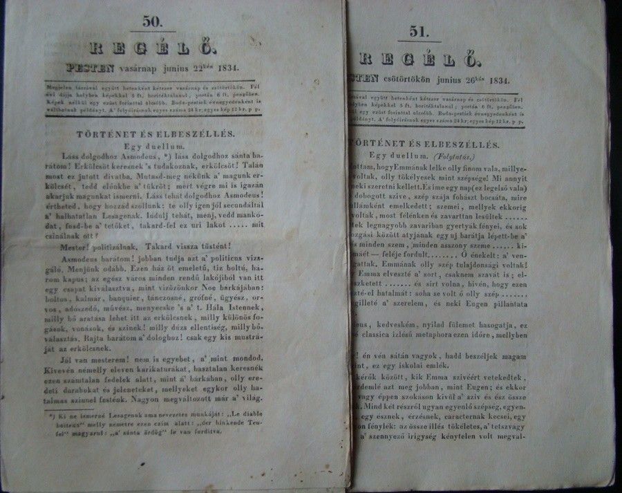 1834 2 db "Regélő" c. lap / 50-51 szám