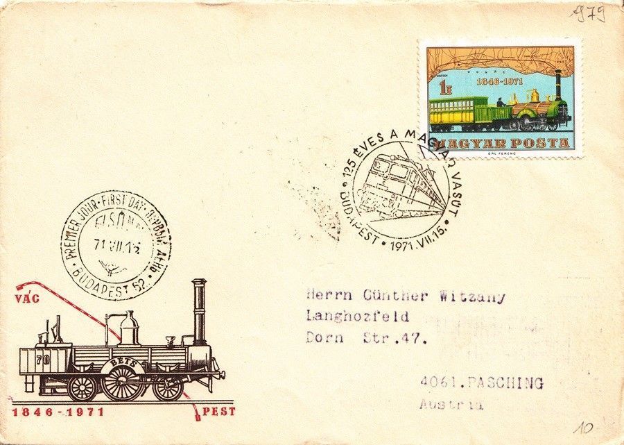 57-979 "125éves a magyar vasut" emlékbélyegzéssel ellátott emlékboríték