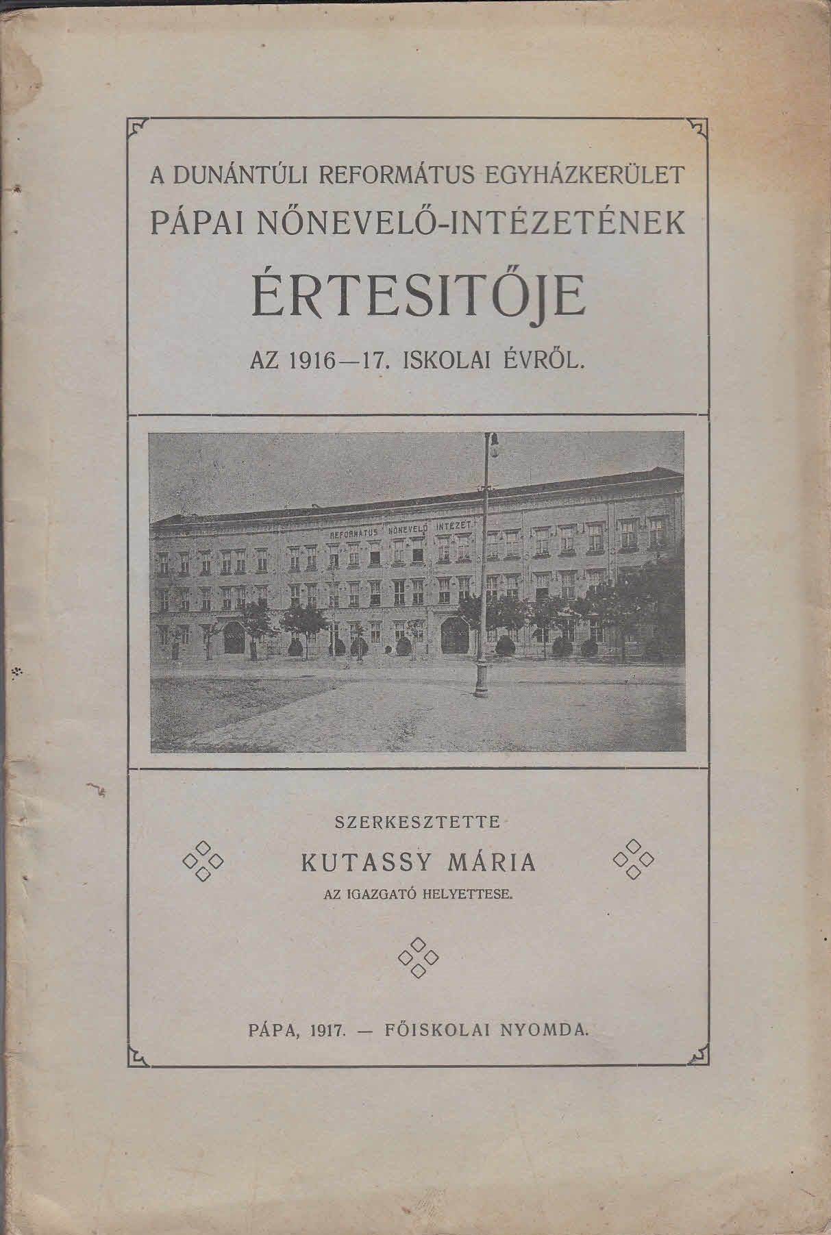 A Dunántuli Református Egyházkerület pápai nevelő-intézetének értesítője a 1916-17. iskolai évről