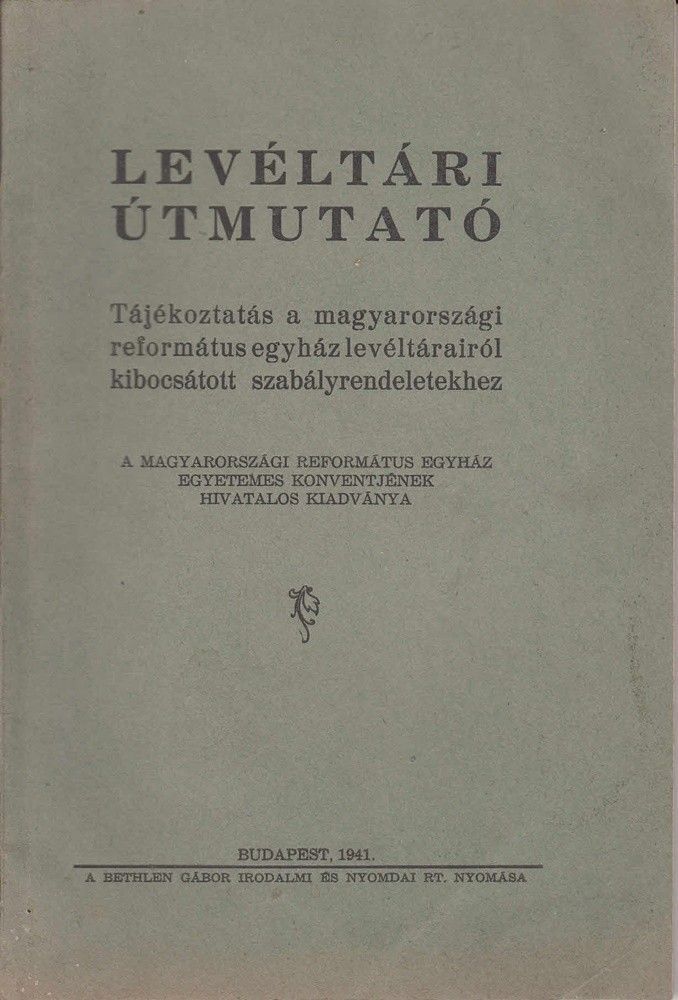 1941 Levéltári útmutató a magyarországi református egyház levéltárairól