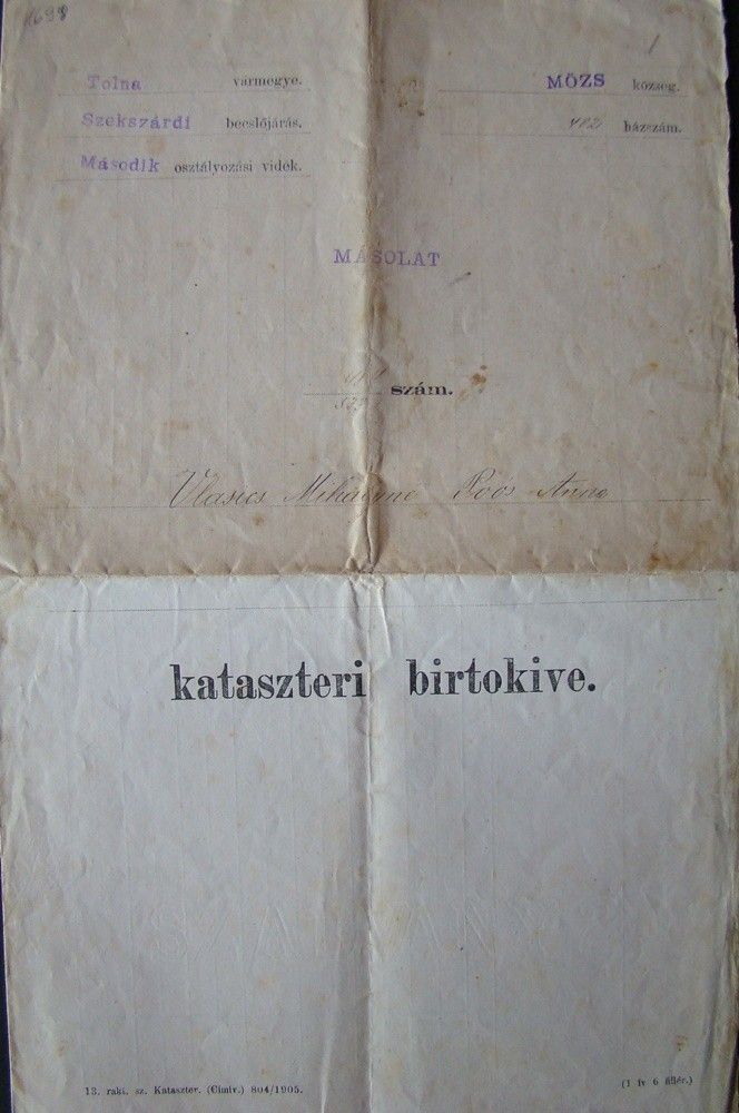 cca 1930 Kateszteri Bitrokív / Mőzs község