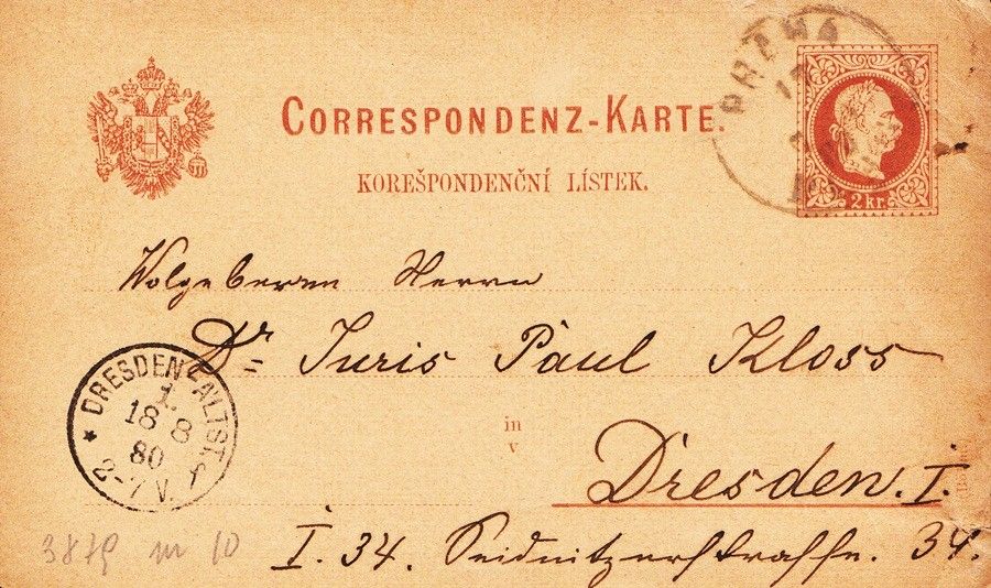 58-540 1880 Díjjegyes levelezőlap "PRAHA" – Dresden