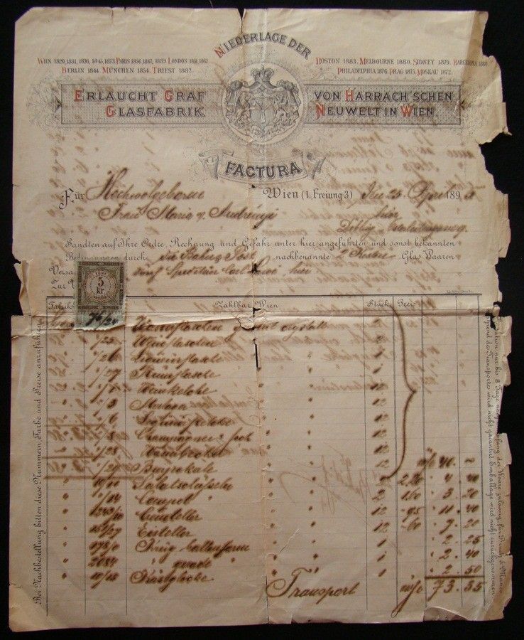 1895 Díszes fejléces számla. 5kr okmánybélyeggel (kissé megviselt állapotban)
