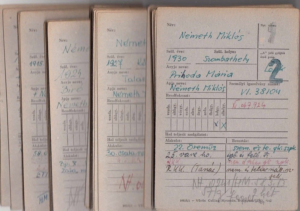 637. tétel:65- 637 1956-1960 52db Katonai tiszti nyílvántartó lap, szolgálati helyek megnevezéssel