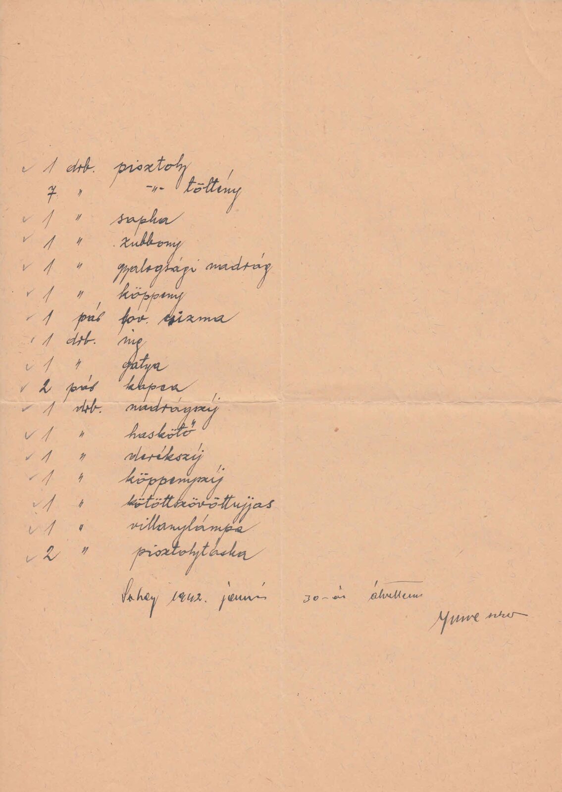 1942 Fegyver és ruházati átvételi lap / Szombathely