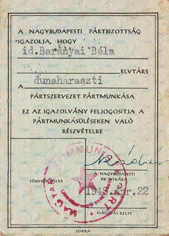1948 A Nagybudapesti Magyar Komonista Párt igazolványa Kádár János PB titkár aláírásával
