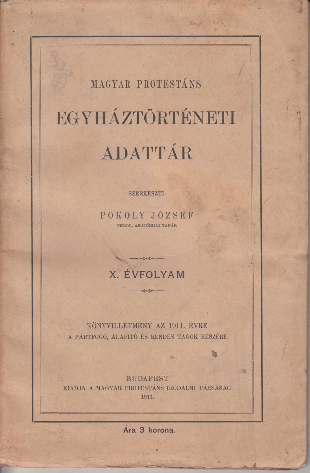 1913 Magyar Protestáns Egyháztörténeti adattár / X. évfolyam