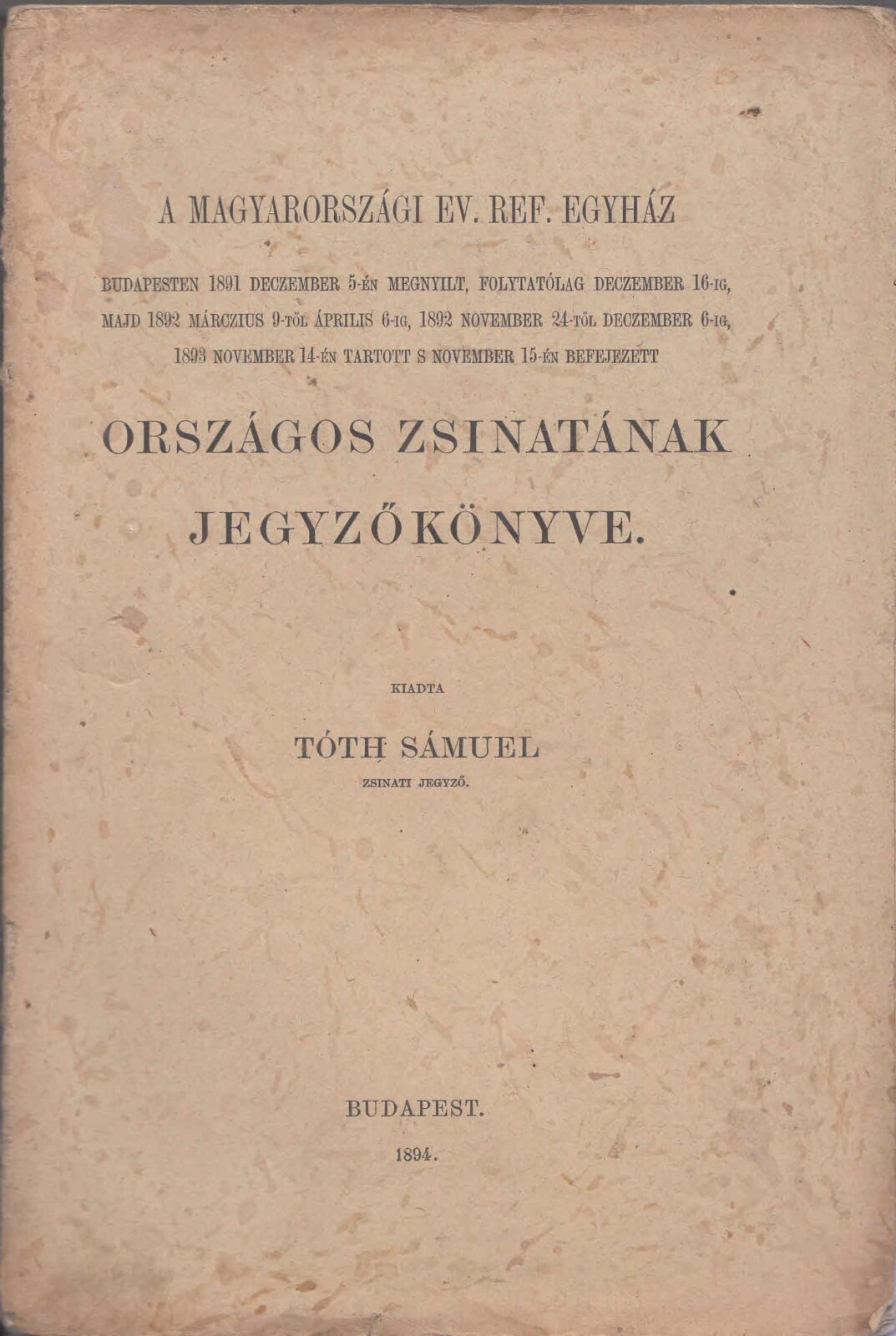 1894 A Magyarországi Reformált Egyház Országos zsinatának jegyzőkönyve, Budapest