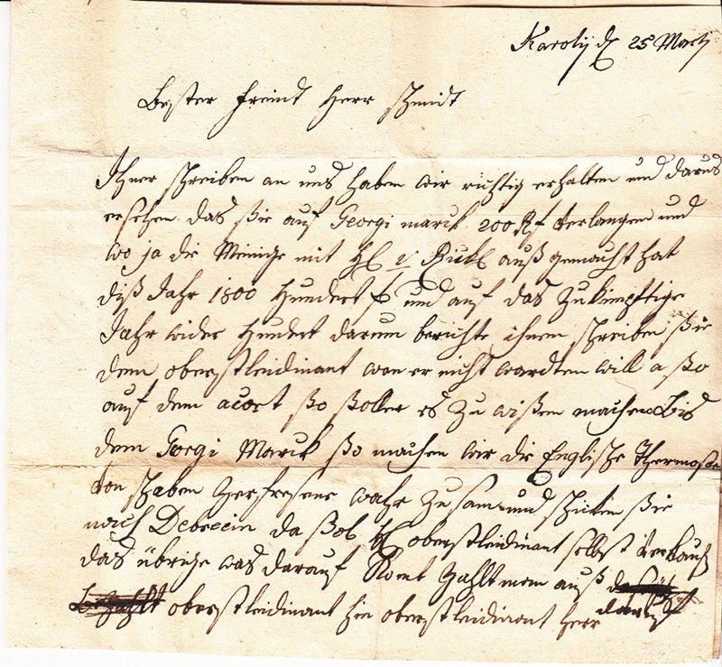 1800. Levél Nagykárolyból Debrecenbe (tartalommal)