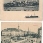 9 db RÉGI külföldi képeslap vegyes minőségben + 2 db 1936. 10P (tíz pengő) / 9 pre-1945 European town-view postcards in mixed quality + 2 1936 10 Pengő banknotes