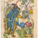 A farkas és a hét kis gida – 5 db régi Indanthren reklám képeslap, Koser Michaels szignóval, vegyes minőség