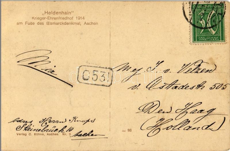 Aachen, Heldenhain Krieger Ehrenfriedhof 1914 am Fusse des Bismarckdenkmal / military heroes cemetery<a href="https://www.darabanth.com/hu/nagyaukcio/38/kategoriak~Kepeslapok/Nemetorszag~15706/Aachen-Heldenhain-Krieger-Ehrenfriedhof-1914-am-Fusse-de