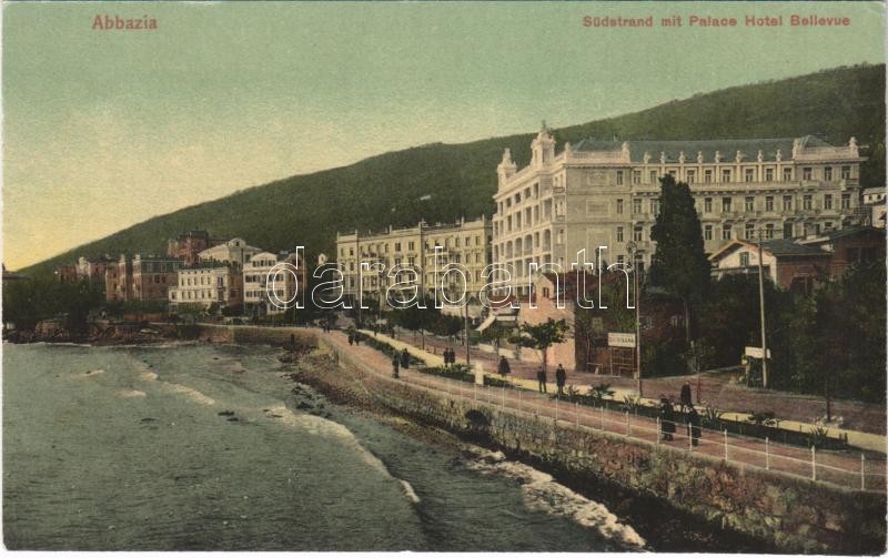Abbazia, Opatija; Südstrand mit Palace Hotel Bellevue, Hotel Pension Quisisana<a href="https://www.darabanth.com/hu/gyorsarveres/415/kategoriak~Kepeslapok/Horvatorszag~1000009/Abbazia-Opatija-Sudstrand-mit-Palace-Hotel-Bellevue-Hotel-Pension-Quisisa