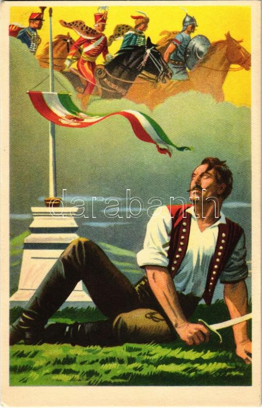 Az ősi erény jogán mindenkor feltámadt újra Magyarország. Kiadja az Ereklyés Országzászló Nagybizottsága / Hungarian irredenta propaganda art postcard, Treaty of Trianon (EK)<a href="https://www.darabanth.com/hu/gyorsarveres/415/kategoriak~Kepeslapo