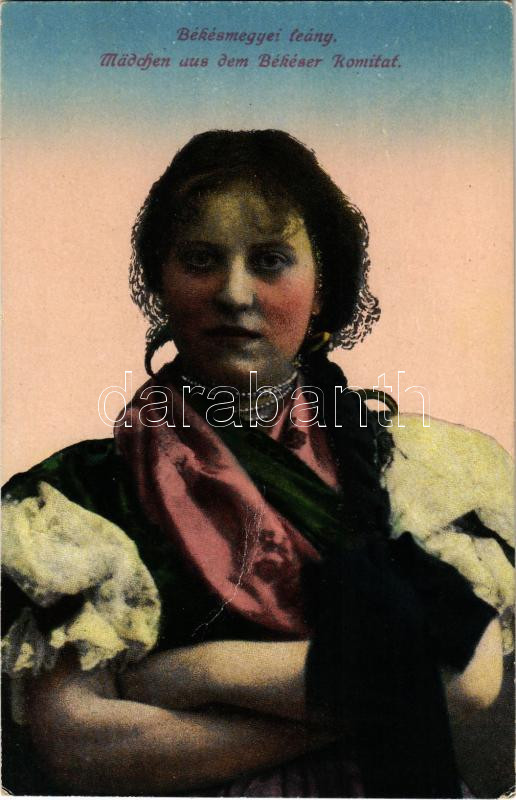 Békés megyei leány, magyar folklór. Erdélyi udvari fényképész felvétele. Vasúti levelezőlapárusítás (EK)<a href="https://www.darabanth.com/hu/gyorsarveres/440/kategoriak~Kepeslapok/Magyarorszag~2000005/Bekes-megyei-leany-magyar-folklor-Erdelyi-udvar