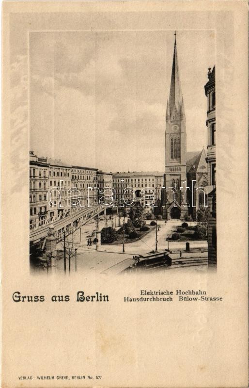 Berlin, Elektrische Hochbahn, Hausdurchbruch Bülow-Srasse / elevated railway, tram (fl)
