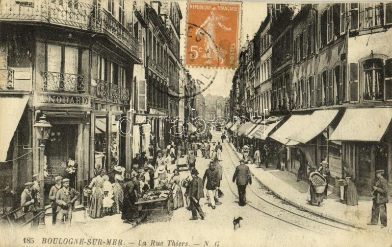 Boulogne-sur-Mer, La Rue Thiers, Anouard / street, vendors, shop, tram. TCV card<a href="https://www.darabanth.com/hu/gyorsarveres/419/kategoriak~Kepeslapok/Franciaorszag~1500069/Boulogne-sur-Mer-La-Rue-Thiers-Anouard-street-vendors-shop-tram-TCV-ca