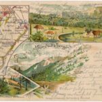Brassó, Kronstadt, Brasov; Gruss aus Kronstadt’s Bergen, Das Schulergebirge von Ober-Tömös aus gesehen, Schutzhaus am Schuler / Üdvözlet a Brassói hegyekből, menedékház, térkép / mountains, tourist house, map. H. Hiemesch Geograph.