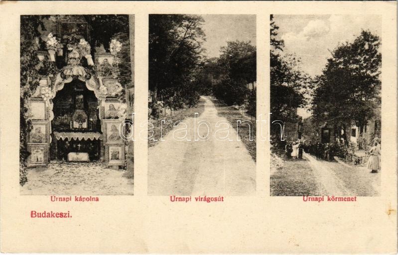 Budakeszi, Úrnapi körmenet, kápolna és virágosút. Fehér Béla fényképész kiadása (fl)