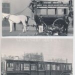 Budapest – 4 db MODERN megíratlan képeslap budapesti közlekedési eszközökről: földalatti villamosvasút motorkocsija, emeletes omnibusz, emeletes lóvasút, villamosvasút / 4 MODERN unused postcards of public means of transportation in Budapest: underground